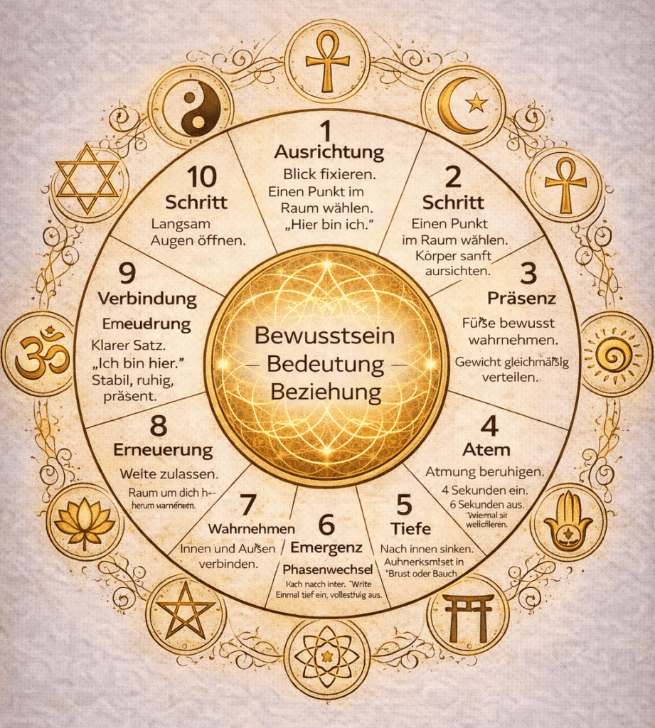 den eigenen Zustand so zu verändern, dass Raum klarer wird, Wahrnehmung ruhiger wird und Handlung aus innerer Ausrichtung entsteht.